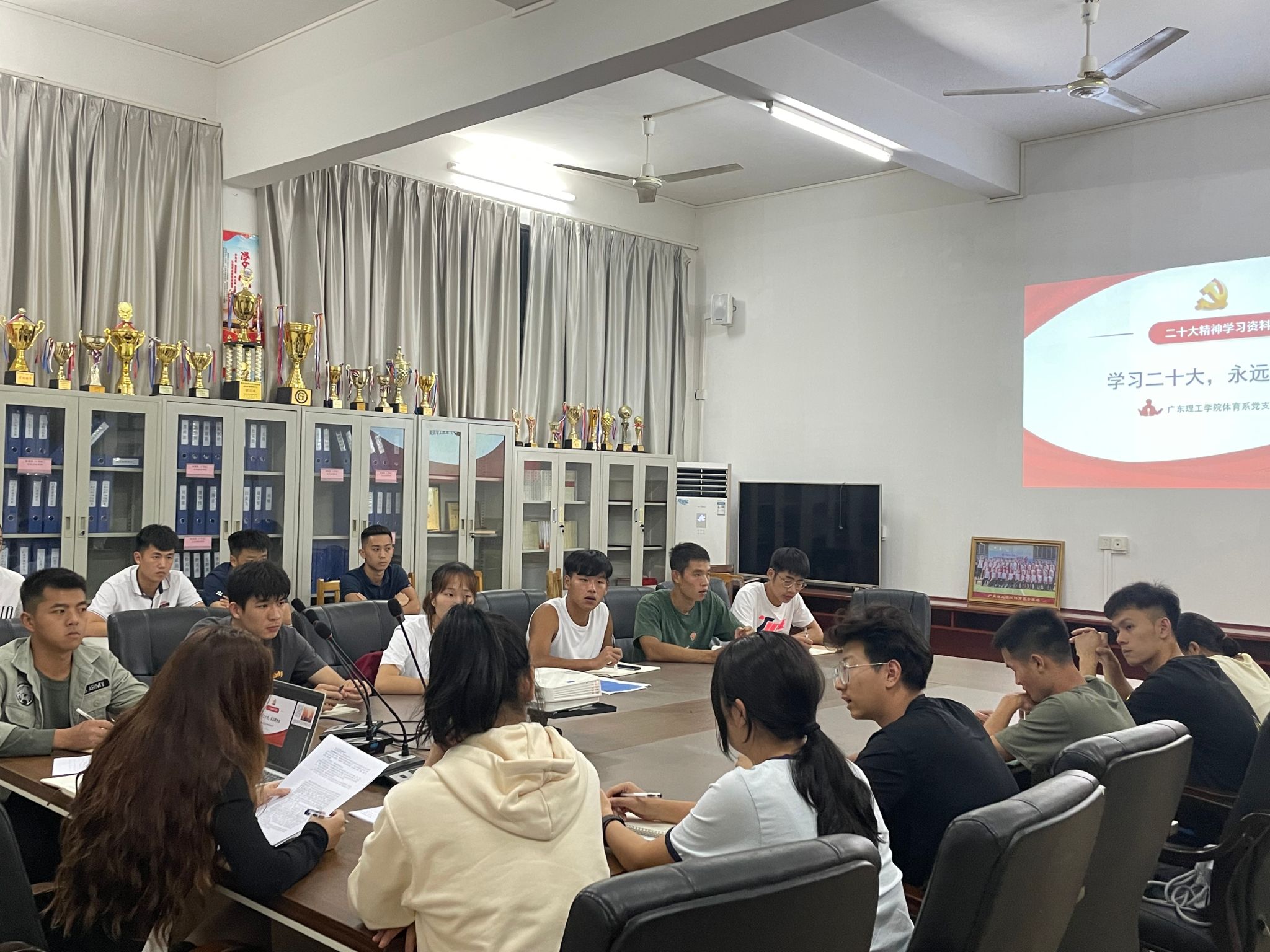 (本网讯)2022年10月16日至22日,中国共产党第二十次全国代表大会在北京胜利召开。为深入学习宣传贯彻党的二十大精神、感悟思想伟力、汲取奋进力量,体育系党支部通过多种形式认真开展党的二十大精神学习活动,引导师生切实把思想、认识和行动统一到党的二十大精神上来,全系上下迅速掀起学习热潮。