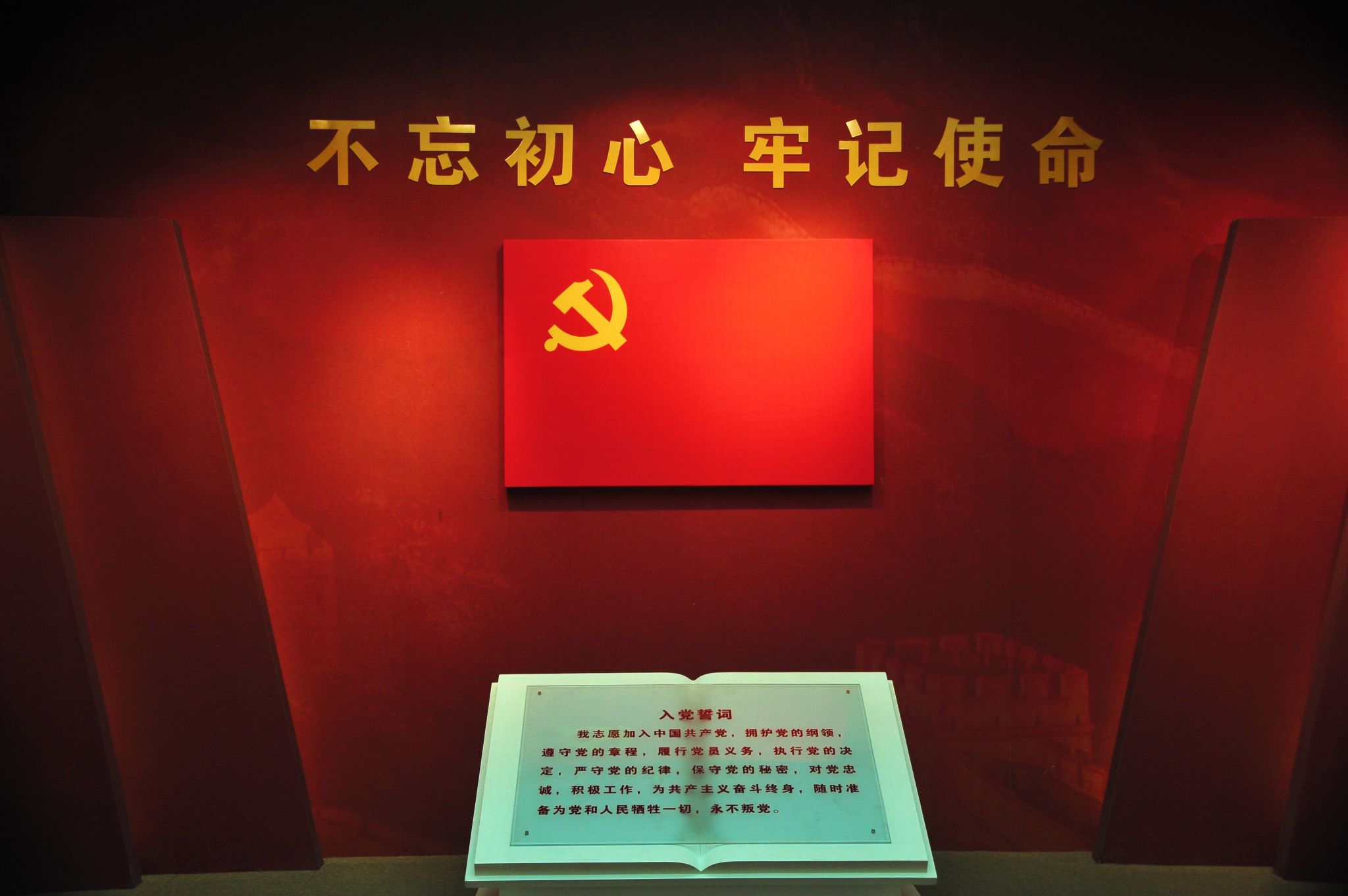 随后,在参观学习的过程中,夏磊书记带领党员在纪念馆“初心堂”里进行了重温入党誓词仪式。
