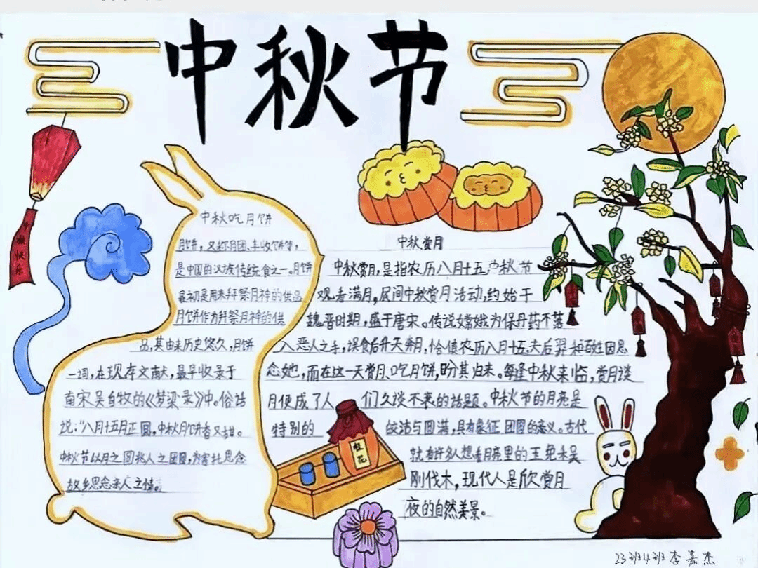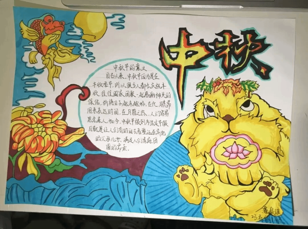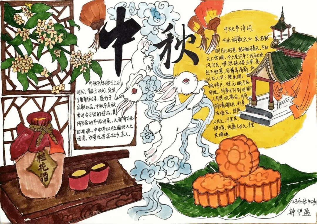 经过激烈的角逐,众多优秀的征文作品脱颖而出。这些作品有的文采斐然,用优美的文字描绘出中秋佳节的团圆氛围;有的情感真挚,讲述了与家人共度中秋的温馨故事;还有的见解独到,深入探讨了中秋文化在当代的传承与发展。手抄报活动同样精彩纷呈,同学们充分发挥自己的想象力和创造力,用画笔勾勒出心中的中秋。一幅幅色彩斑斓、主题鲜明的手抄报,不仅展现了中秋的传统习俗,还融入了现代元素,体现了同学们对传统文化的创新理解。