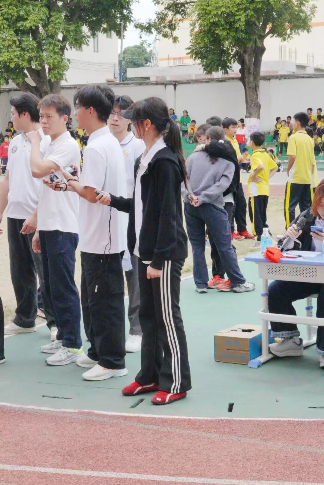 赛场内外,同学们不仅严谨履行裁判职责,还主动与小运动员亲切互动,耐心解答规则疑问,在严格执裁的同时传递了体育的温暖与乐趣。孩子们纯真的笑容与学子们专注的身影相互映衬,成为运动会上一道亮丽的风景。