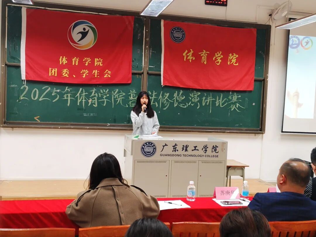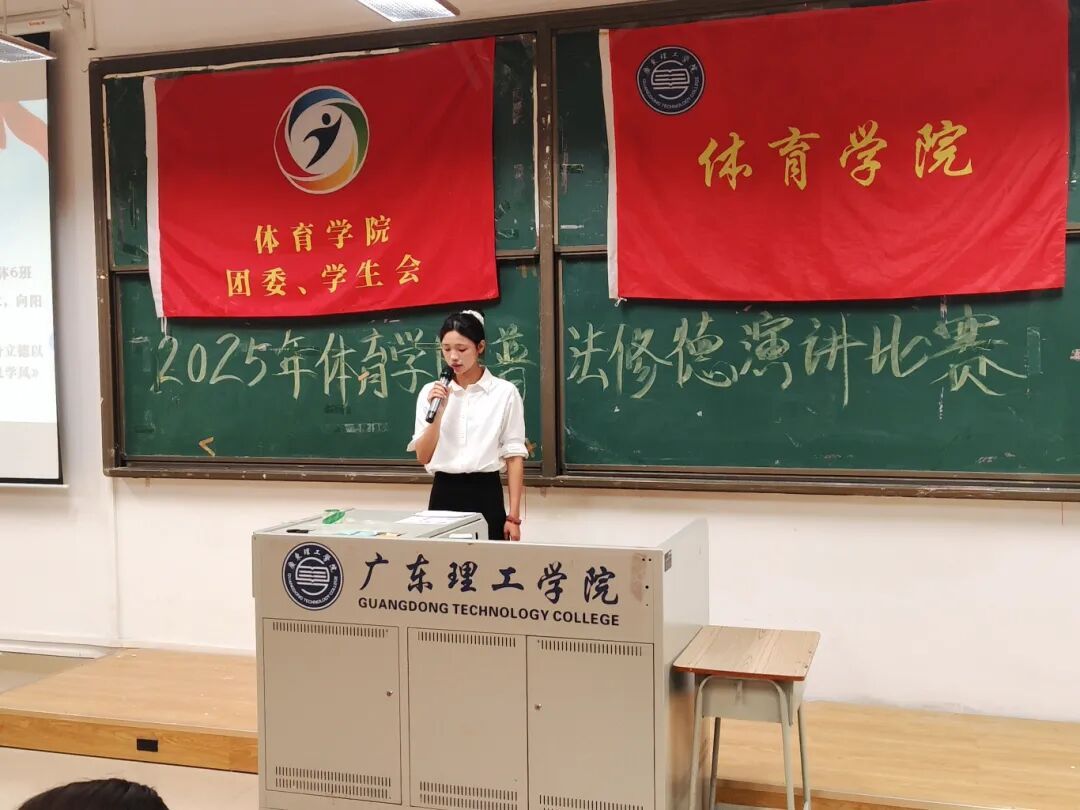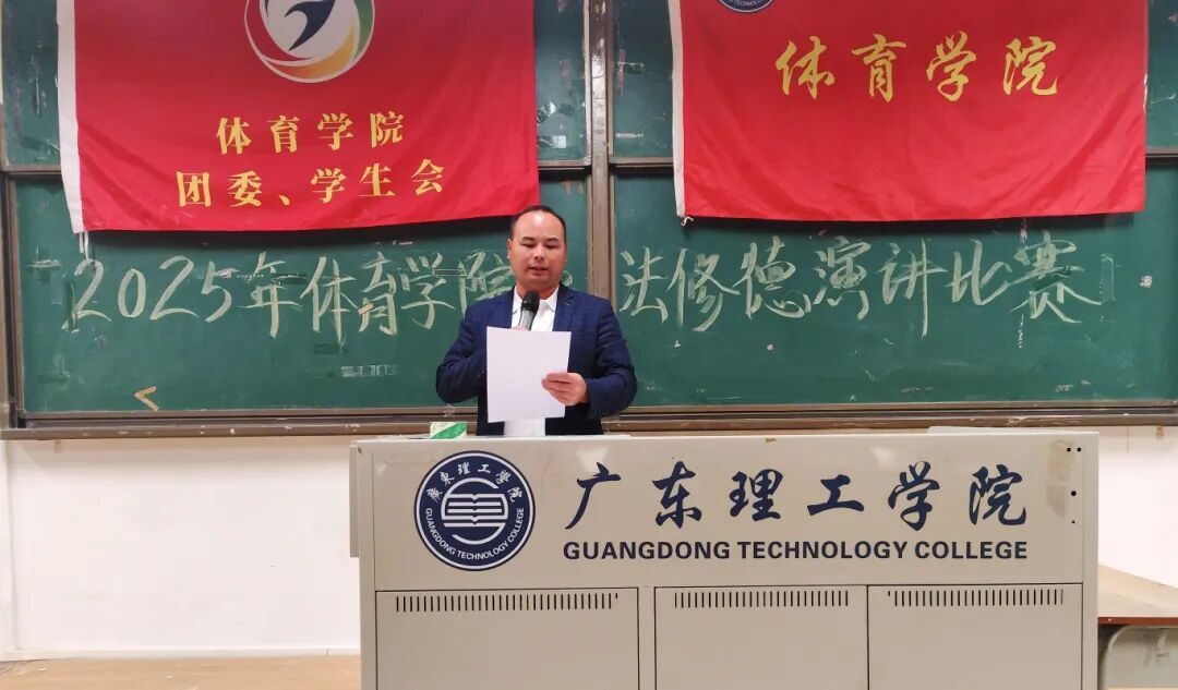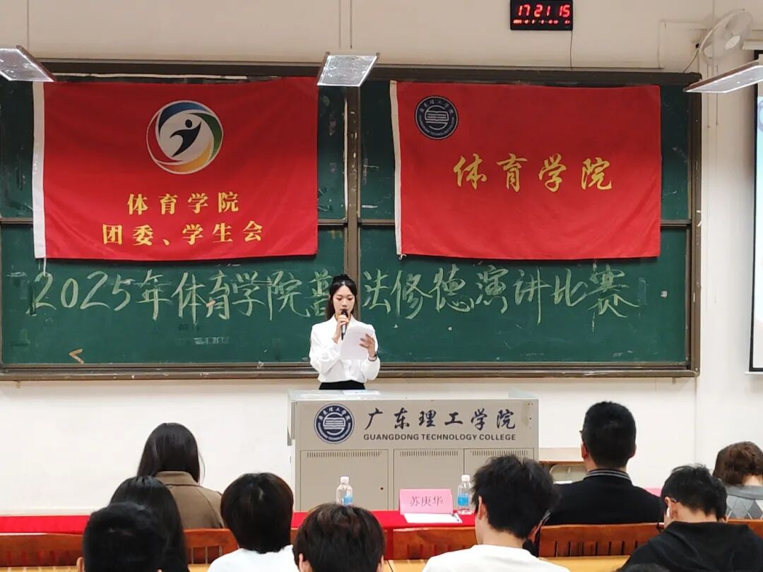 活动伊始,苏庚华书记为比赛致开幕辞。他指出,体育与法治、品德密切相关,赛场上的公平竞争是法治精神的具体实践,尊重对手、遵守规则则是体育品德的重要体现。对体育专业员工而言,普法教育有助于将规则意识融入训练竞赛,成为知法守法的体育人才;修德实践则是传承体育精神、提升职业核心竞争力的关键。苏书记希望参赛选手紧扣主题,结合体育人身边的法治案例与真实感悟,讲述体育与法治、品德融合的故事,展现新时代青年的道德追求,并期待全院同学能从比赛中受到启发,将法治意识与道德修养转化为日常自觉行动。最后,他预祝比赛圆满成功,选手充分展现风采。