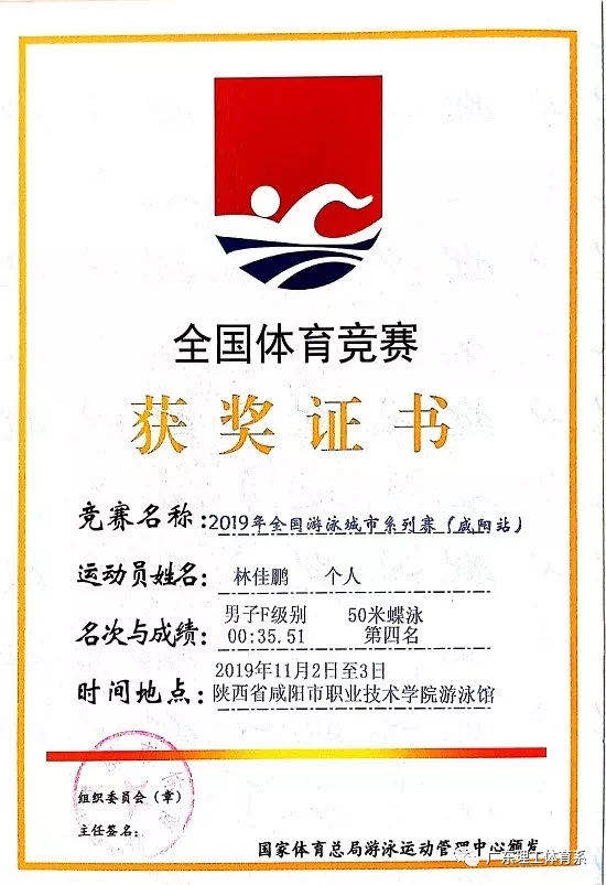12月14和15日,2019年全国游泳城市系列赛(上海站)总决赛在上海东方体育中心游泳馆 开赛,全国各地的9支代表队和876名个人,共计947名选手参加角逐。其中我系员工杨骏威参加了本次比赛,并分别获得了50米自由泳第五名,100米自由泳第四名的优异成绩。