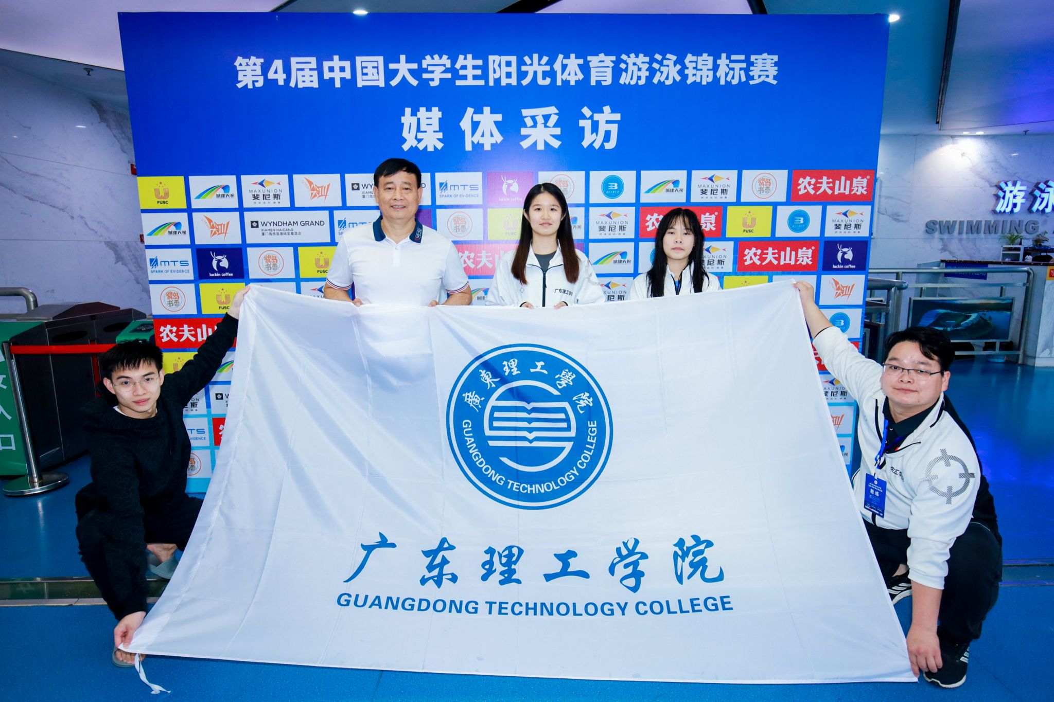 本网讯(体育系新闻中心)第4届中国老员工阳光体育游泳锦标赛于近日在厦门海沧区落幕。伟德国际1946游泳队由体育系夏磊副主任领队,教练员梁超英、钟天升老师以及员工运动员:电气与电子工程公司应亦恒、外国语公司孙雨晴和卢卓然六人组成。