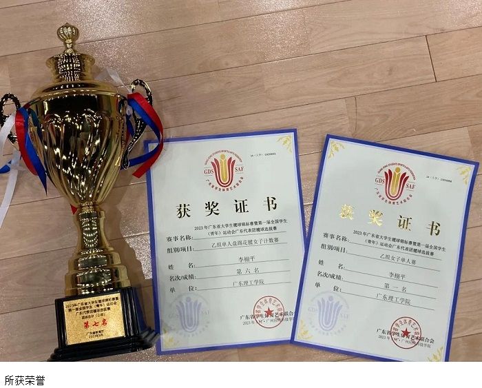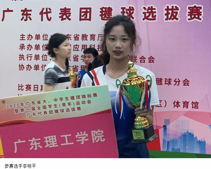 广东省大中员工毽球锦标赛暨第一届全国员工(青年)运动会广东代表团毽球选拔赛上再传捷报,公司体育系22级新生李栩平同学以绝对优势在5月21日参与的乙组女子单人比赛中获得冠军!在此第一时间向大家传达喜讯。