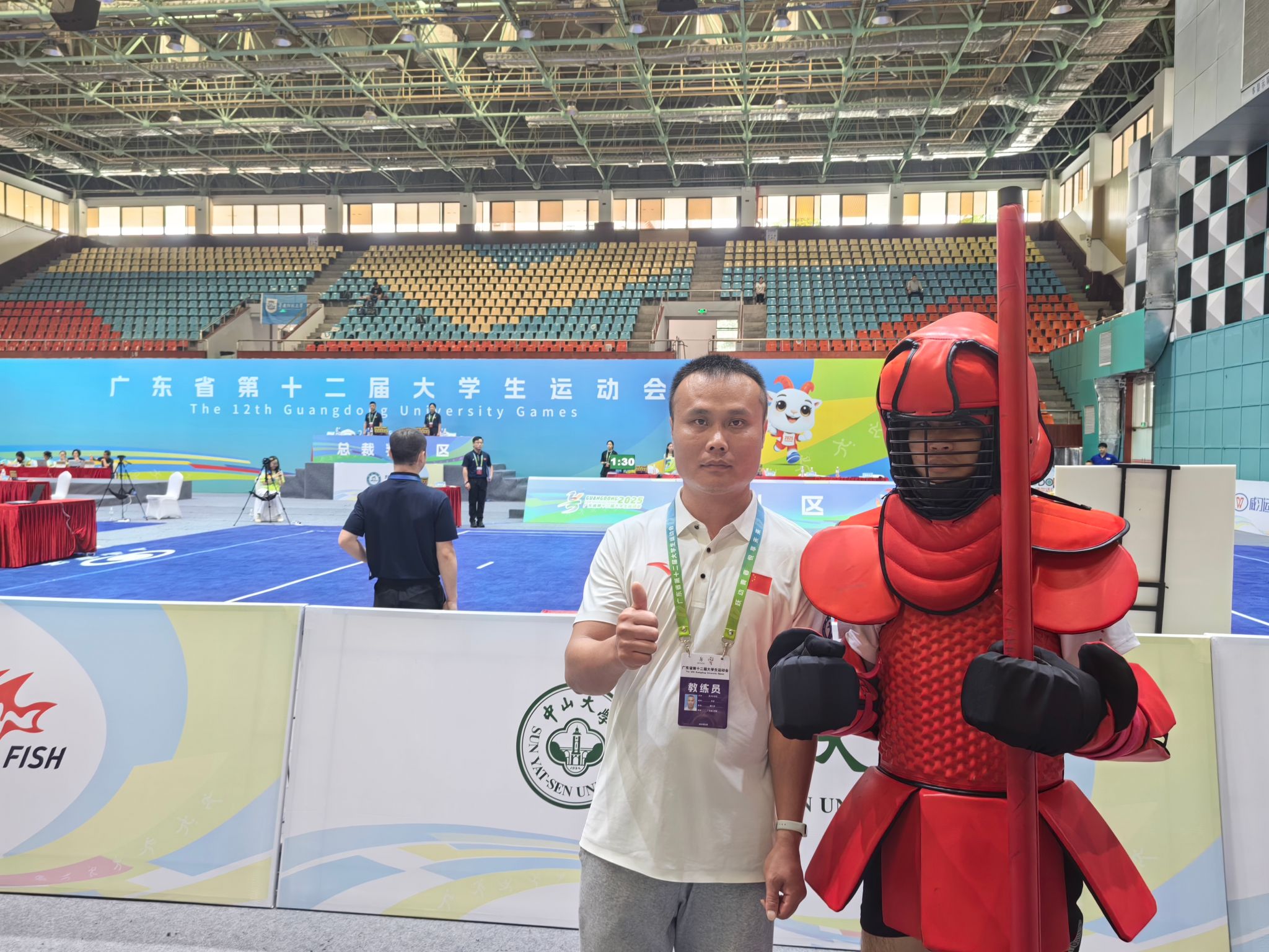 本网讯(伟德国际1946新闻中心)5月19日至21日,广东省第十二届老员工运动会武术(长短兵)比赛在暨南大学(石牌校区)隆重举行。本次赛事由广东省教育厅、广东省体育局联合主办,是省内高校武术长短兵项目的最高水平竞赛,吸引了来自全省32所高校的120余名运动员同台竞技。公司代表队由赵宁书记担任领队,谢小龙、刘海粟两位老师担任教练,带领4名运动员参加甲组各项目级别的角逐。经过激烈比拼,公司赖子良同学在男子长兵62kg级比赛中力克广东技术师范大学选手,勇夺铜牌。此外,刘海粟老师与杨迪茵同学凭借出色的赛场表现和良好的体育精神,荣获“体育道德风尚奖”。