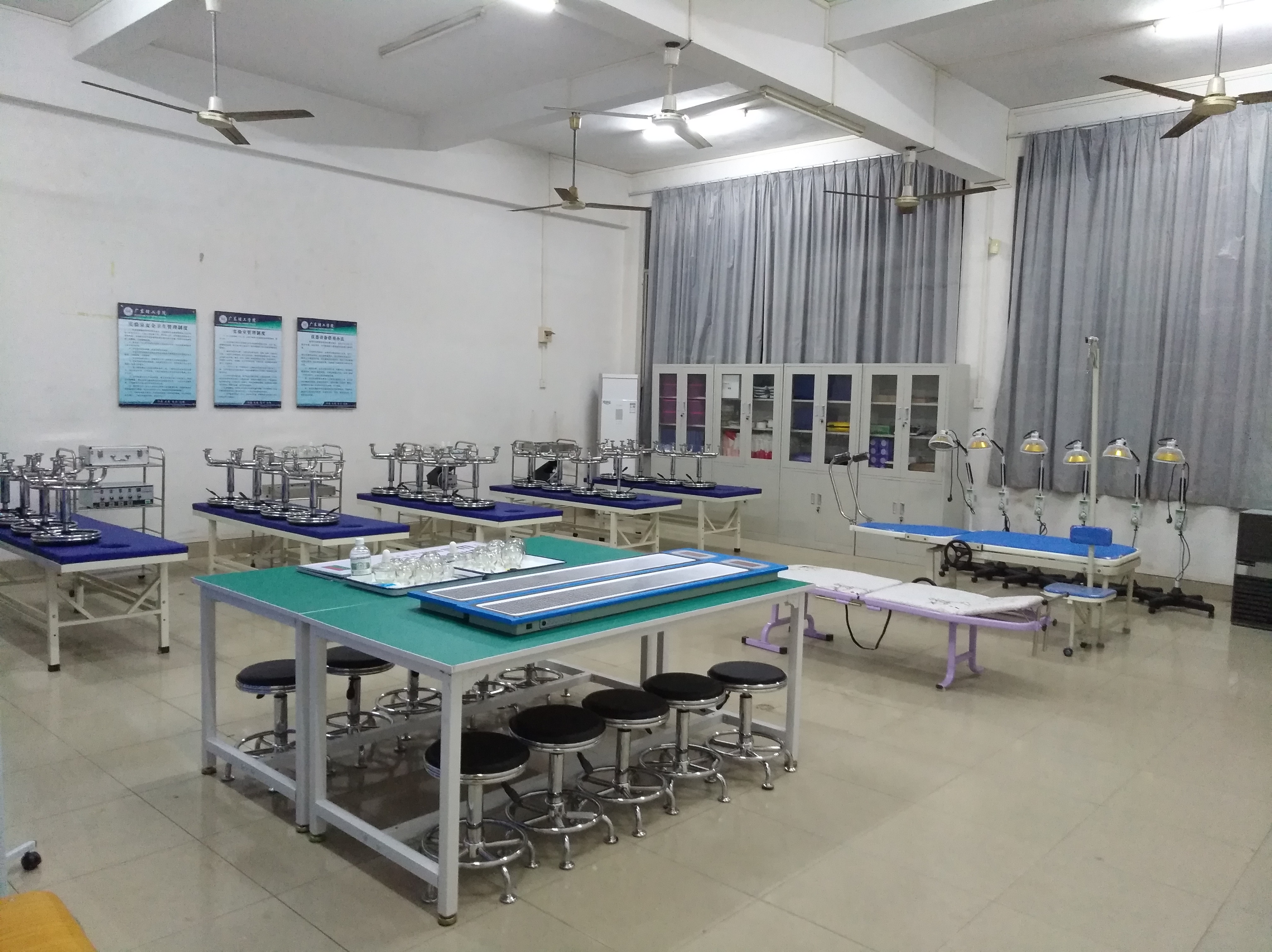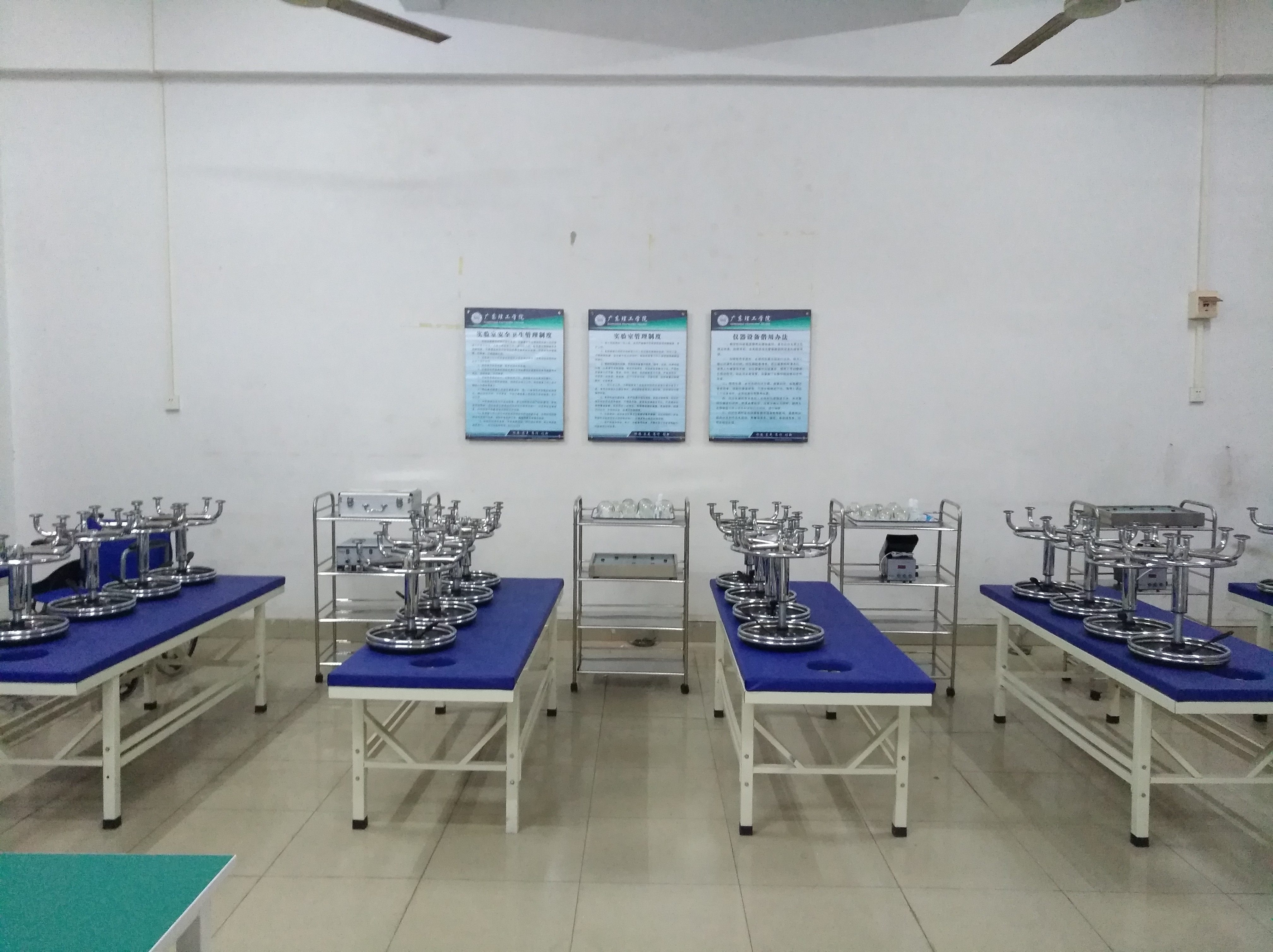 主要仪器:实验室主要仪器设备有按摩床、颈椎牵引床、腰椎牵引床、红外线理疗仪、火罐、电针灸理疗仪、心肺复苏模拟人等。