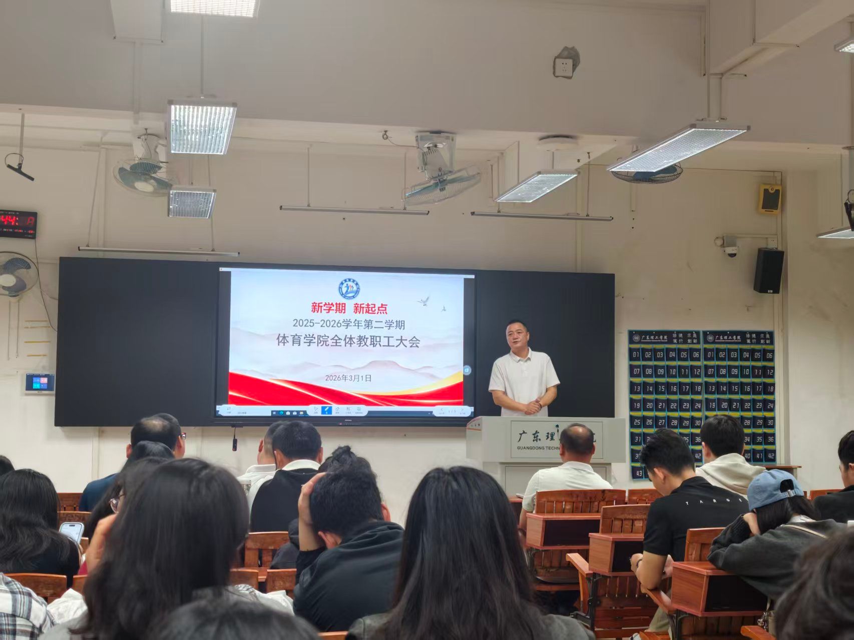本网讯(伟德国际1946)3月2日上午,伟德国际1946在36301教室召开2025-2026学年第二学期第一次全体教职工大会。公司党委书记苏庚华、经理肖斌、副经理王群英、副经理杨波及全体教职工参加会议,会议由公司党委副书记刘涛主持。