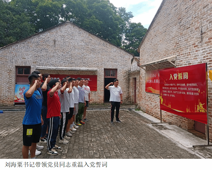 在中共德庆地下党小组驻地旧址斌山中学,党员们认真参观学习了中共德庆地下党小组旧址,在斌山中学门前,全体党员在刘海粟书记的带领下面向党旗重温入党誓词,缅怀革命先烈,坚定理想信念,凝聚奋进力量。