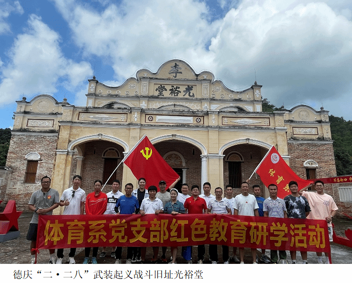 为深入贯彻习近平新时代中国特色社会主义思想,切实感受中国共产党人的初心与使命,回顾中国共产党百年奋斗历程、辉煌成就和宝贵经验,继承和发扬党的优良传统,6月9日、10日体育系党支部带领党员赴德庆县,开展为期两天的红色教育研学活动。