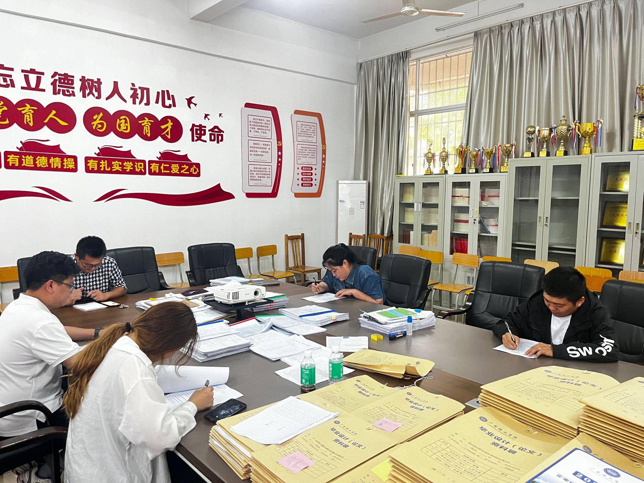 本次笔试采用闭卷作答方式进行,总分100 分,整场笔试历时120分钟。试卷包含单项选择题、不定项选择题、判断题、简答题、案例分析题、论述题六种题型,内容丰富、结构完整,涵盖辅导员岗位职责、员工思想政治教育、心理辅导、党团工作、班级管理等内容,目的主要考察辅导员对辅导员工作相关知识的掌握程度、对信息的理解分析和解决问题能力,以及辅导员的理论素养和文字表达能力。参赛辅导员们用心审题,沉着应答,展现了公司学工队伍严明的纪律作风和良好的精神风貌。