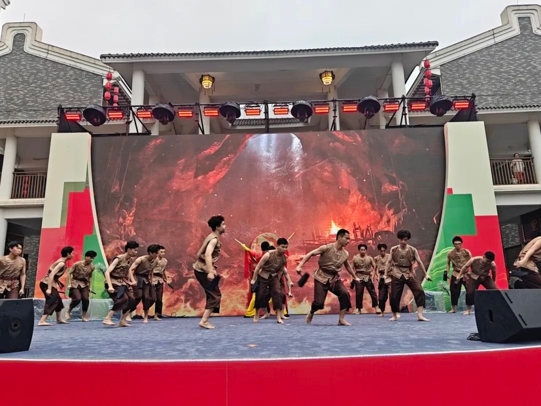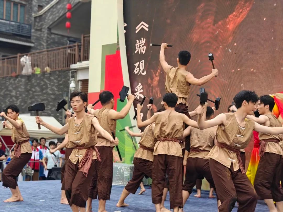 表演现场,青石板上的凿痕如历史褶皱。参演员工紧握铁凿的手掌青筋暴起,每一次挥锤都带着金石相击的钝响。当第一星石屑溅落时,仿佛打开了端溪河畔的时空隧道——千年前的砚工们正是在这样的劳作中,将岭南山水的灵秀凿进砚池,让“呵气研墨”的传奇从粗糙石坯中生长而出。