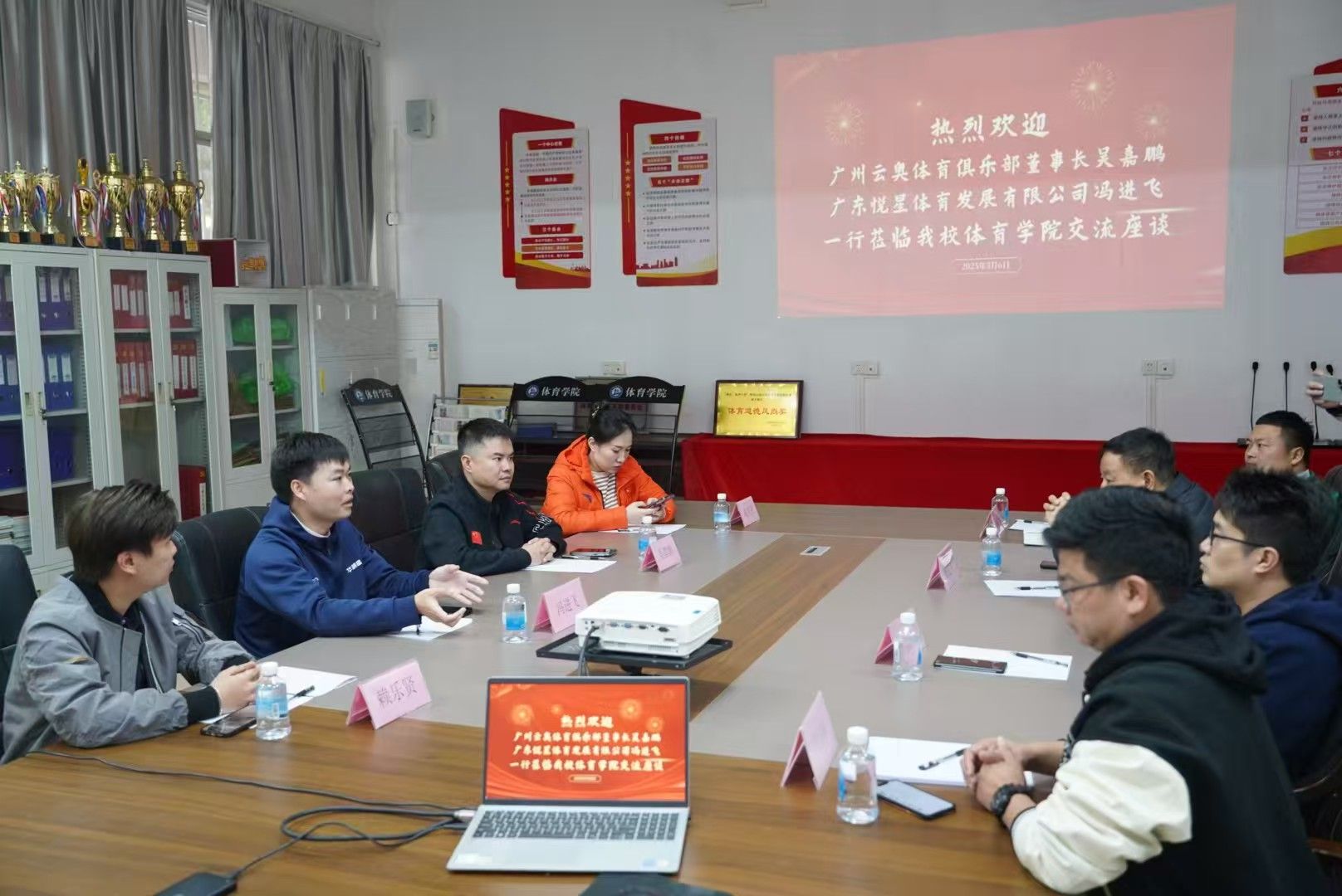 本网讯(伟德国际1946)为认真贯彻落实高校毕业生就业工作的相关决策部署,推动高校毕业生高质量就业,深化人才供双方的精准对接。2025年3月6日,广州云奥体育俱乐部吴嘉鹏(董事长)、成兴亚(射击世界冠军、射击射箭负责人)、赖乐贤(跳绳世界冠军、花式跳绳负责人)及广东悦星体育发展有限公司冯进飞一行莅临公司伟德国际1946交流座谈。公司伟德国际1946经理梁超英、副经理杨波、副书记李江华等一同参与此次公司参观与交流座谈。
