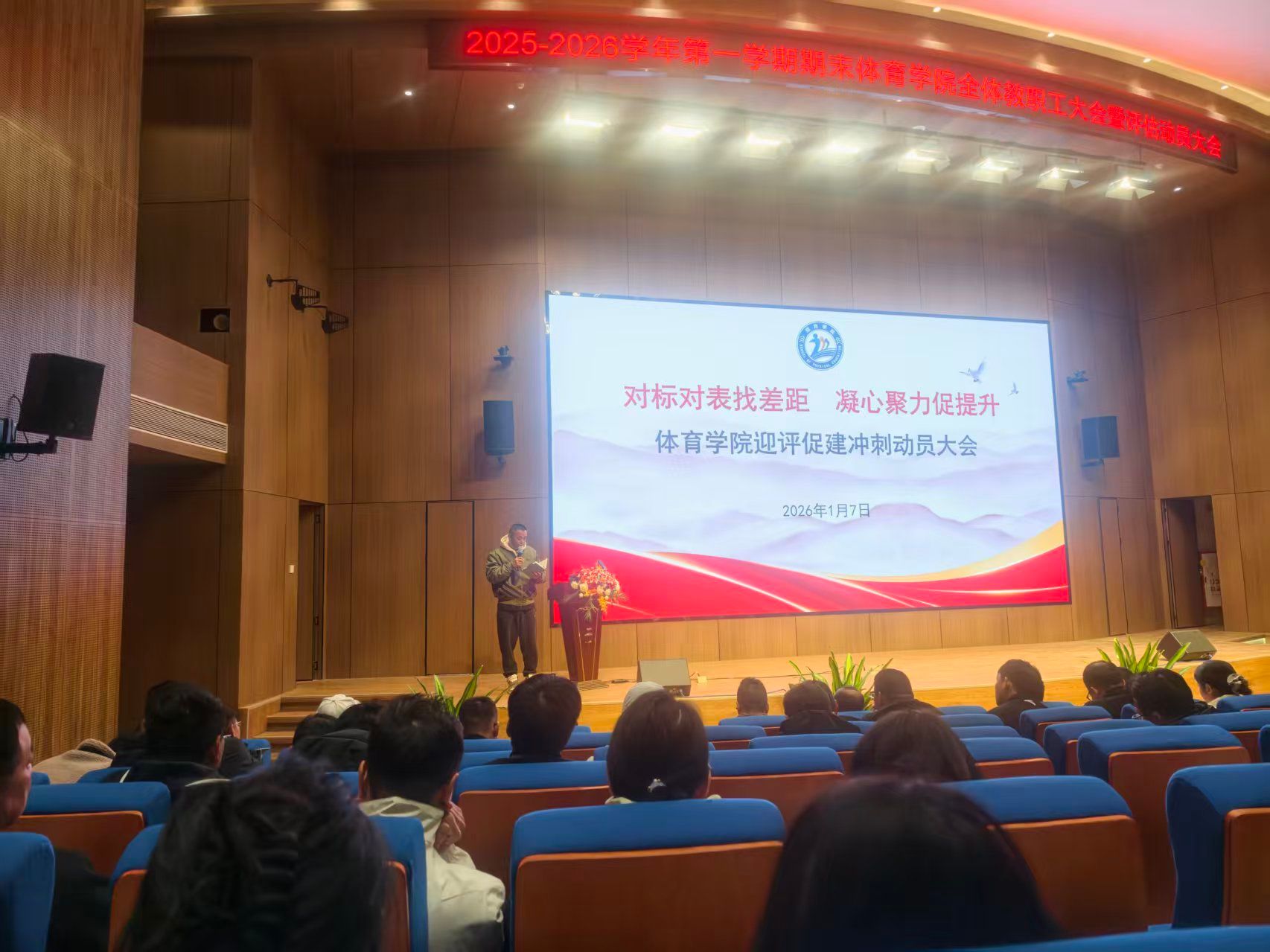 本网讯(伟德国际1946 梁洁晶)为全面吹响本科教学工作合格评估冲刺号角,统筹推进公司各项重点工作落地见效,2026年1月7日下午,伟德国际1946在员工活动中心1楼报告厅召开2025-2026学年第一学期全体教职工大会暨评估冲刺动员大会。会议由公司党委副书记刘涛主持,参加此次会议的有公司党委书记苏庚华、经理肖斌、副经理王群英、杨波及全体教职工。会议聚焦评估冲刺关键任务,围绕党建工作、学风建设、教学工作、校内外竞赛及本科教学工作合格评估冲刺阶段工作等核心议题进行全面总结与系统部署。