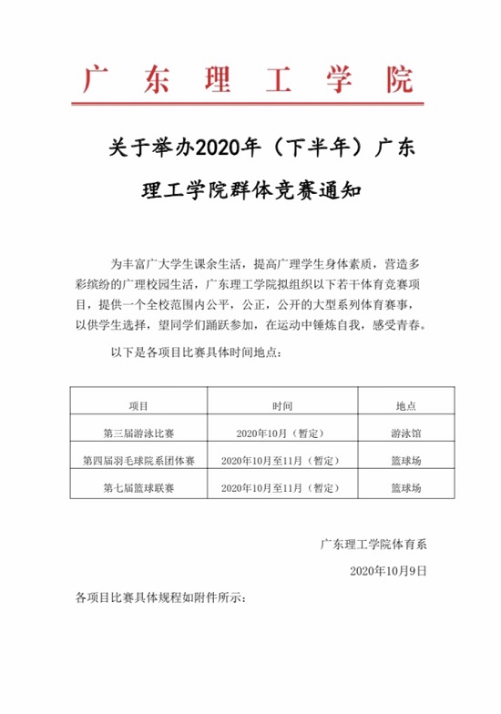 关于举办2020年(下半年)广东 理工公司群体竞赛通知