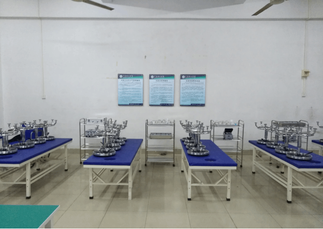 主要仪器:实验室主要仪器设备有按摩床、颈椎牵引床、腰椎牵引床、红外线理疗仪、火罐、电针灸理疗仪、心肺复苏模拟人等。